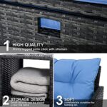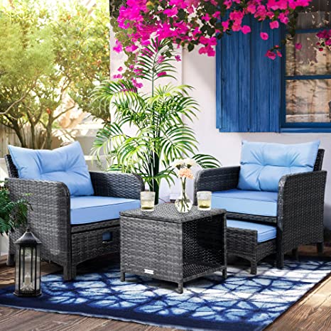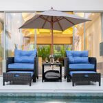 Home Patio and Garden Pamapic 5 Pieces Wicker Patio Furniture Set Outdoor Patio Chairs with Ottomans Conversation Furniture with coffetable for Poorside Garden Balcony(Blue)