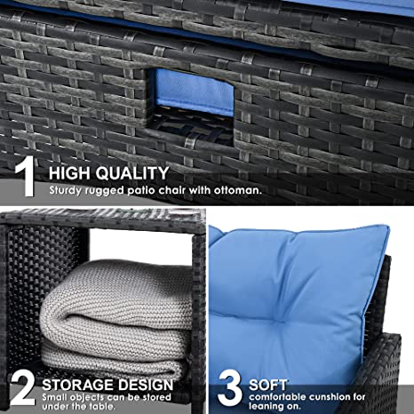 • [Easy Assembly & Shipped in Two Boxes] Wicker patio furniture is quick and easy to install.In order to prevent the product from being damaged due to excessive weight,we will ship in two boxes. A box contains a chair, an ottoman, all screws. A box contains a chair, an ottoman, and a coffee table. If you have any assembly questions, please contact us,we will answer your questions ASAP.